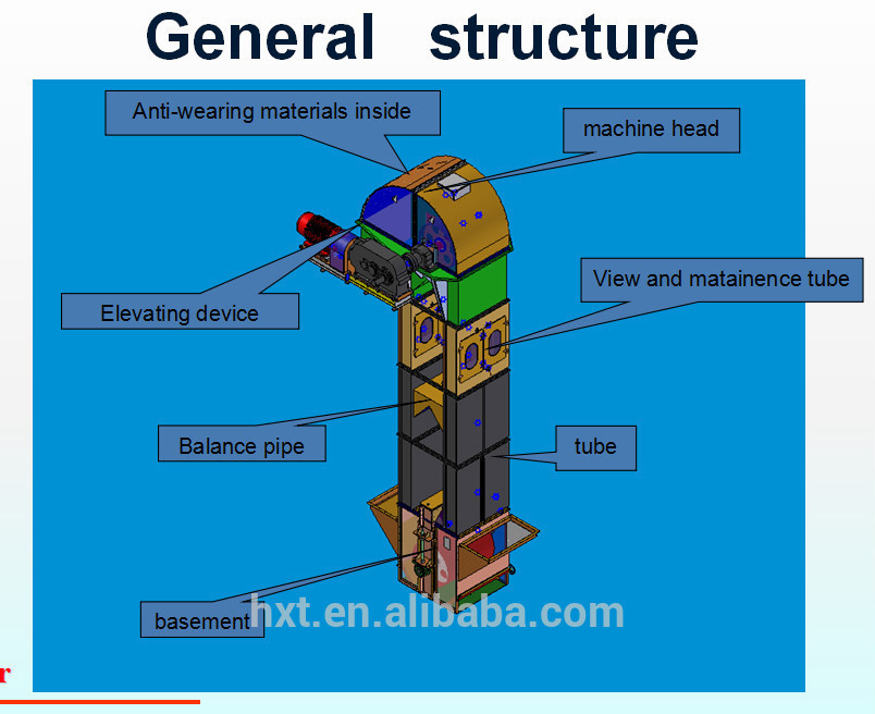 本機(jī)適用于糧食、肥料、飼料等行業(yè)顆粒狀或粉狀物料的垂直輸送。具有提升穩(wěn)定、占地面積小、提升度高、密封性能好等優(yōu)點(diǎn)。